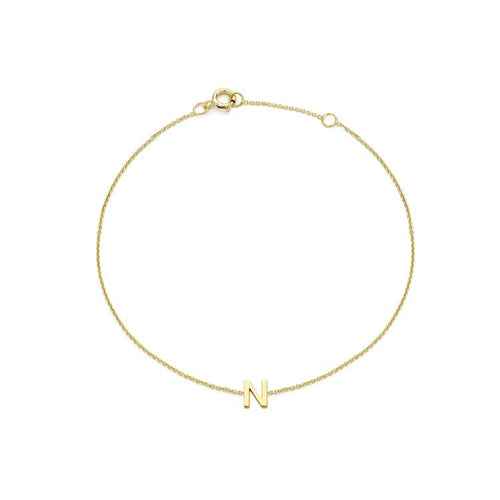 9K Yellow Gold Mini Initial 'N' Bracelet 15.5-19cm