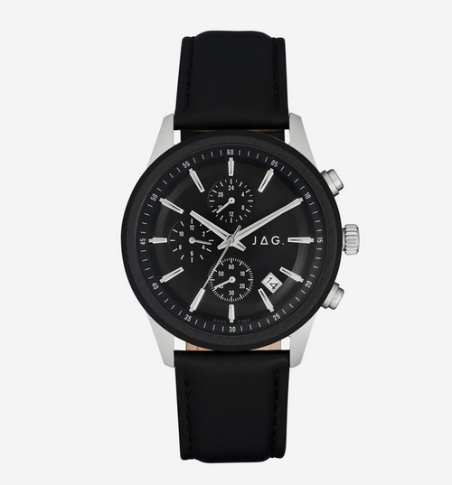 SKU: J2639  Band Colour: Black Band Material: Leather Case Diameter: 42mm Water Resistance: 5ATM Dial Colour: Black