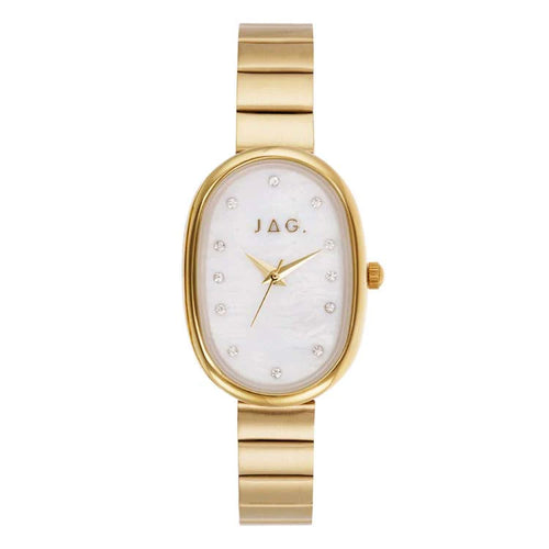 Jag Lorne – Gold-Tone Oval Watch with Mother-of-Pearl Dial and Crystal Markers / J2920A