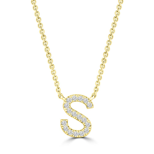 Name necklaces are the latest must-have fashion piece. Choose this Initial 'S' Necklace with 0.06ct Diamonds in 9K Yellow Gold for the perfect look. Great for a gift or for yourself.