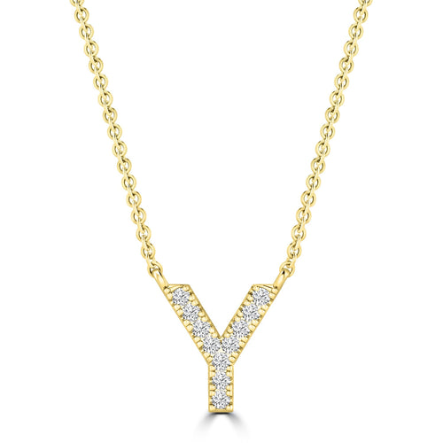 Name necklaces are the latest must-have fashion piece. Choose this Initial 'Y' Necklace with 0.06ct Diamonds in 9K Yellow Gold for the perfect look. Great for a gift or for yourself.