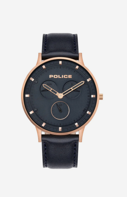 Police Berkeley Black Leather Strap Mens Watch / PL.15968JSR/03