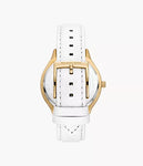 Sku: MK7466 Case Size: 38 mm Movement: Quartz Three-Hand Platform: SLIM RUNWAY Strap Material: Leather Strap Colour: White Case Water Resistance: 5 ATM Case Material: Stainless Steel Case Colour: Gold...
